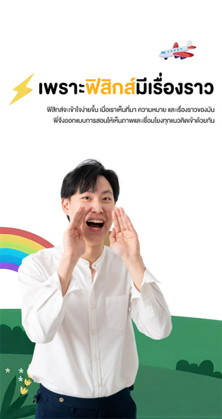 พี่เคยสอบตกฟิสิกส์มาก่อน และไม่อยากให้น้องเจ็บปวดเหมือนพี่ พี่จึงก่อตั้ง Physics Chill ขึ้นมาด้วย Passion ในการทำให้ ฟิสิกส์เข้าใจง่าย และมีปณิธานจะทำให้